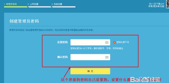 2、然后来到如下图界面,在该界面设置自己好记的路由器登录密码,然后下一步,然后跳过WAN口检测,进入下一界面