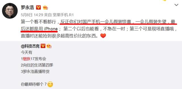 我还记得五月初,在《魅族17》发布前,有网友问罗永好对《魅族17》发布会的看法。罗永好直言不讳地说,不管你看不看都没关系,最后每个人都会买iPhone。对许多人来说,这听起来有些苛刻,但这也是事实:对于许多人来说,在同等价格下,iPhone仍然是绝对优先的选择。罗永好说得真对,数据说明了一切!