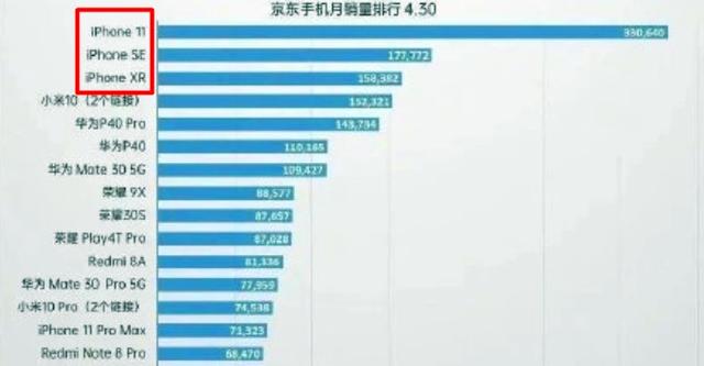 因此,在全球市场上,iPhone正经历着冷流,但在中国市场上,它却是“春花盛开”。以一个电子商务平台为例。今年4月,电子商务平台的三大手机销量都是iPhone手机!iPhone 11、iPhone SE2和iPhone XR的销量分别为33万部、17.7万部和15.8万部,其次是小米10系列和华为P40系列。