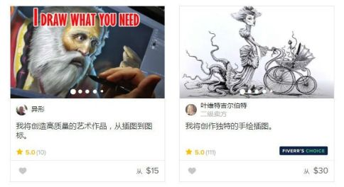 在确定了这些领域之后,我们可以比较国内设计网站和Fiverr上相同服务的不同价格。