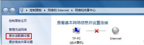 第二步:弹出 网络和共享中心 的界面,点击 更改适配器设置。如下图所示: