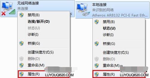 第三步:找到 无线网络连接(如果是有线就点击本地连接),右键点击并选择 属性。如下图所示: