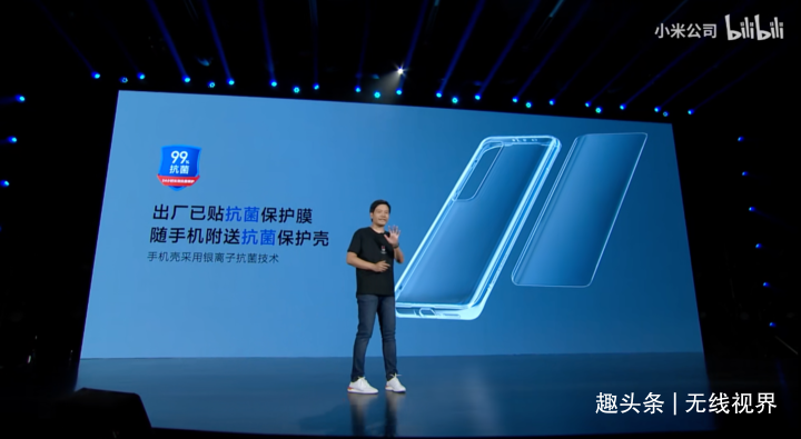 甚至有厂商开始把手机膜当做一个卖点了。比如小米 10 至尊版发布会上(小米十周年主题演讲),雷总特地介绍了这款手机出厂自带「抗菌」保护膜。