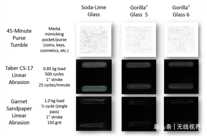 在翻滚测试中,第六代大猩猩玻璃比第五代刮伤更多. 图片来自:康宁