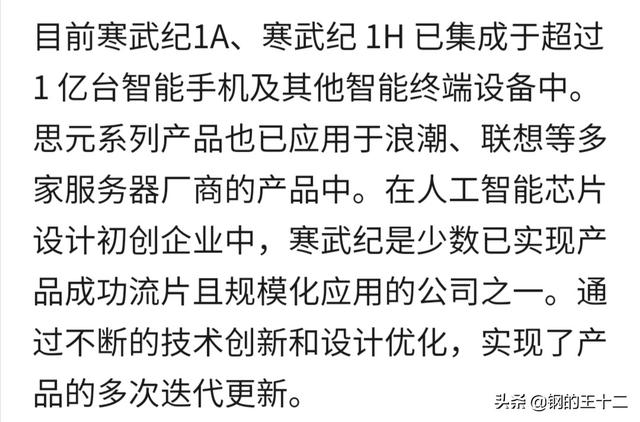 寒武纪早期的高营收,来自于华为海思麒麟芯片的支撑,海丝在麒麟970和麒麟980上采用的是寒武纪IP。